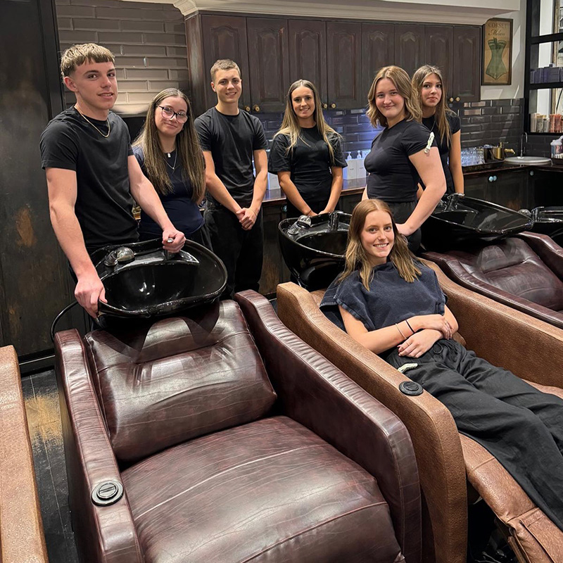 Enjoy fresh coffee, chilled music and seriously comfortable chairs while you spend time at Sanctuary. Original old school barber chairs and industrial edginess to honour our guys and enough chandeliers and crystal to feel like you want to stay longer. The textures of our salon support us welcoming you to unwind a little and enjoy some you time.